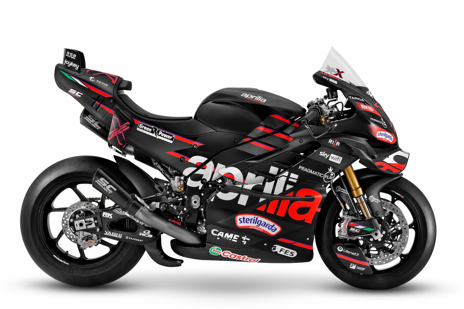 Evocativa della MotoGp è la speciale livrea che riprende la RS-GP25, ultima evoluzione del progetto MotoGP di Aprilia Racing.
