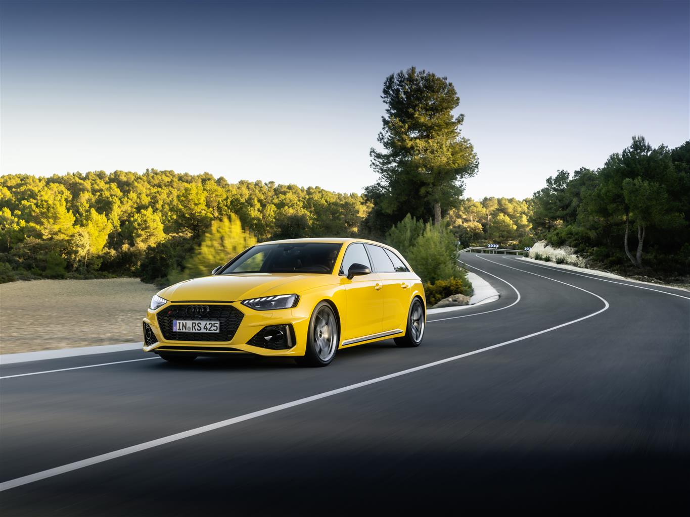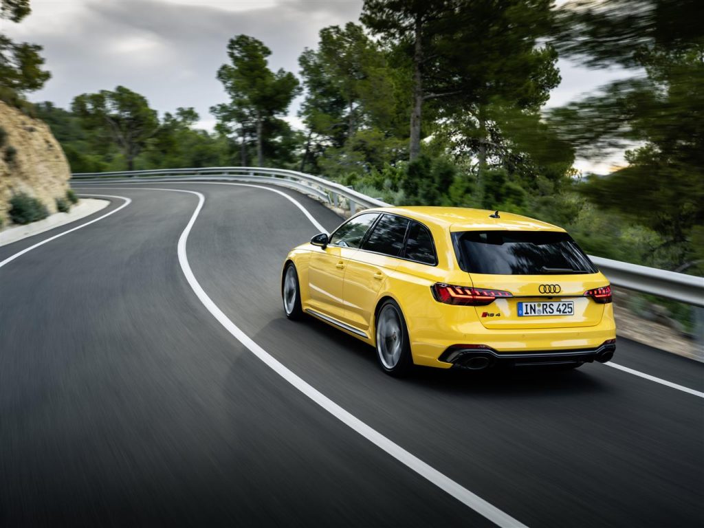 I colori disponibili sono il grigio Nardo, il nero Mythos e il suggestivo giallo Imola, omaggio ad Audi RS 4 Sport del 2001. Non manca un pacchetto estetico con calotte dei retrovisori laterali, blade anteriori, sezione inferiore delle minigonne ed estrattore in carbonio opaco.