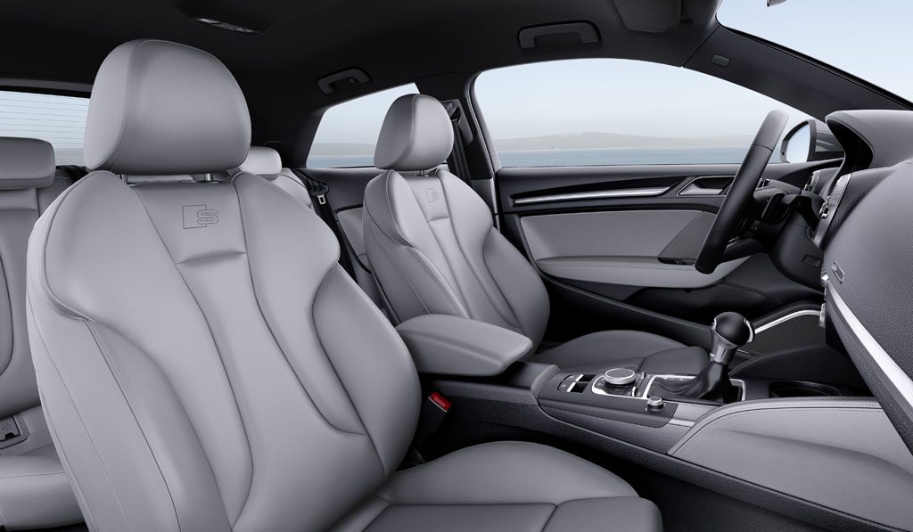 I proiettori di Audi A3, dal caratteristico design a forma di dente nel bordo inferiore, conferiscono al frontale un look energico e nuovo. Di serie vengono montati proiettori xenon plus, ma Audi offre, a richiesta, anche fari a LED e, per la prima volta, proiettori a LED Matrix. Grazie a una costruzione che sfrutta materiali leggeri la nuova Audi A3 con motore 1.0 TFSI pesa, a vuoto e senza conducente, solo 1.150 kg, facendo così registrare il valore migliore nella sua categoria. La carrozzeria della nuova Audi A3 è estremamente robusta e resistente agli urti. Il parabrezza insonorizzato è di serie. L’abitacolo offre la tipica qualità Audi. Il nuovo volante a tre razze è disponibile a richiesta con la funzione di riscaldamento. Per un maggiore comfort durante i tragitti più lunghi la nuova Audi A3 può essere dotata di sedile conducente con funzione massaggio.