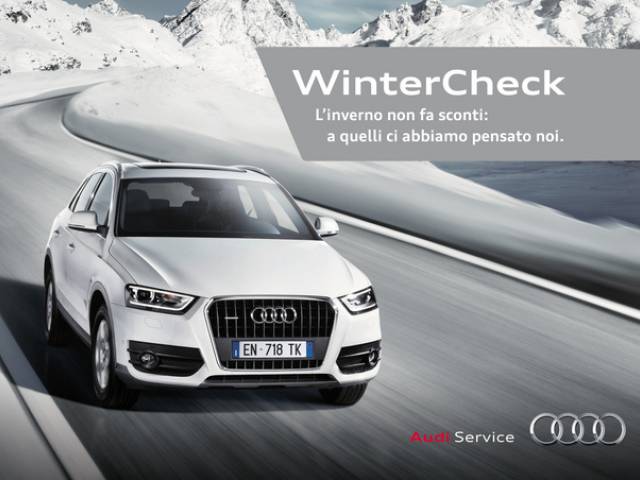 L’inverno è una stagione critica e richiede la massima efficienza di ogni componente dell’automobile per garantire la maggior sicurezza possibile a ciascun automobilista. Per questo motivo, Audi dedica ai propri Clienti l’iniziativa Audi Winter Check, grazie alla quale è possibile portare la vettura in uno dei numerosi Service Partner presenti sull’intero territorio e usufruire di una serie dettagliata di verifiche tecniche a un prezzo vantaggioso..
