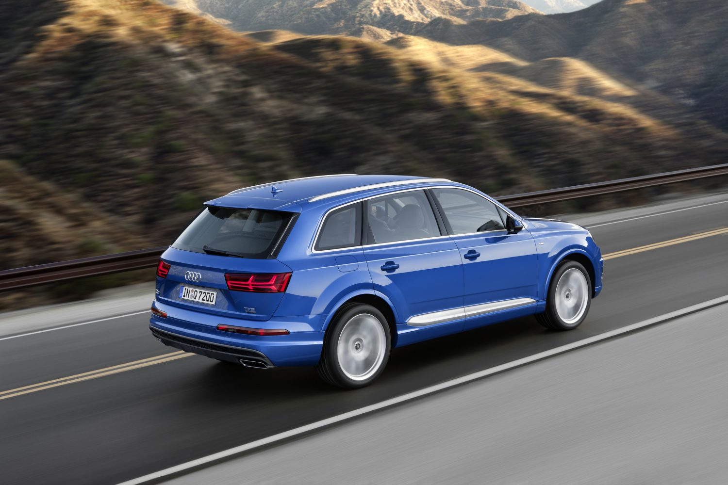 Fahraufnahme Farbe: Arablau Kristalleffekt Verbrauchsangaben Audi Q7:Kraftstoffverbrauch in l/100km kombiniert: 8,3 ? 5,7;CO2-Emissionen in g/km kombiniert: 183 – 149