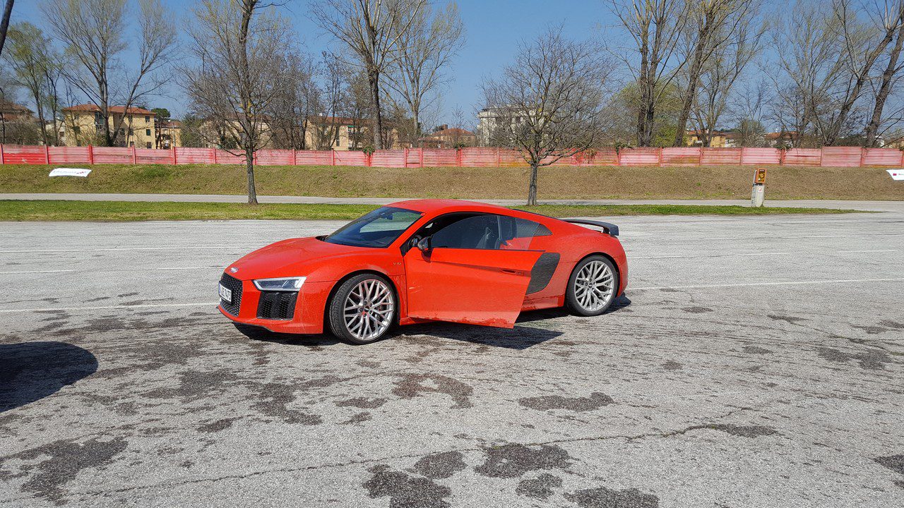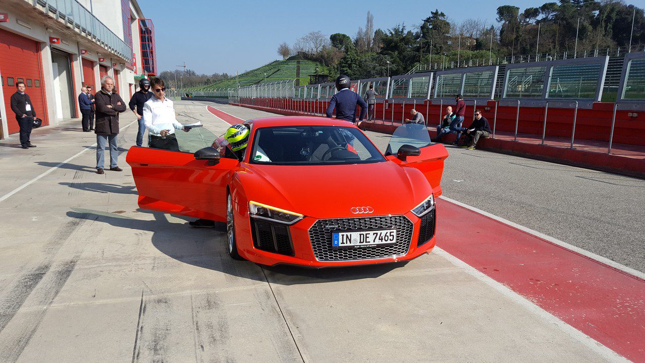 L’emozione di salire a bordo è tanta. Non capita , infatti, tutti i giorni di poter guidare bolidi di questo calibro. Si avete letto bene, l’Audi R8 Plus è un bolide ma è anche una macchina da tutti i giorni. A questa definizione ci sono arrivato dopo averla provata in pista a Imola perchĂ©, in puro stile Audi Sport, la R8 Plus si è dimostrata una supersportiva davvero facile da guidare ed estremamente sicura. E’ vero noi non saremo dei piloti da poter sfruttare al massimo le capacitĂ di una tale vettura ma, fidatevi, la R8 Plus difficilmente vi tradirĂ , raramente vi trasmetterĂ reazioni nervose anzi guidandola in pista, se mai vi doveste trovare a chiudere gli occhi, vi sembrerebbe di guidare una comune utilitaria con l’unica differenza di avere 610 CV sotto il cofano. La sorellona gemella dell’Audi TT danza tra un cordolo e l’altro con estrema facilitĂ e con una rapiditĂ senza pari, l’impianto frenante è capace di staccate da pelle d’oca e lo sterzo è comunicativo e duro al punto giusto. La trazione non viene mai a mancare e la stabilitĂ non ha eguali. Il motore spinge davvero forte con un allungo quasi infinito. Certo non siamo di fronte all’enorme coppia del V8 biturbo ma, complice la estrema leggerezza della vettura (1.630 kg) la R8 Plus accelera con un missile terra aria. Il suono allo scarico è un ululato degno dei migliori aspirati che si fanno sentire sempre di piĂą a mano a mano che l’ago del contagiri sale verso la zona rossa.