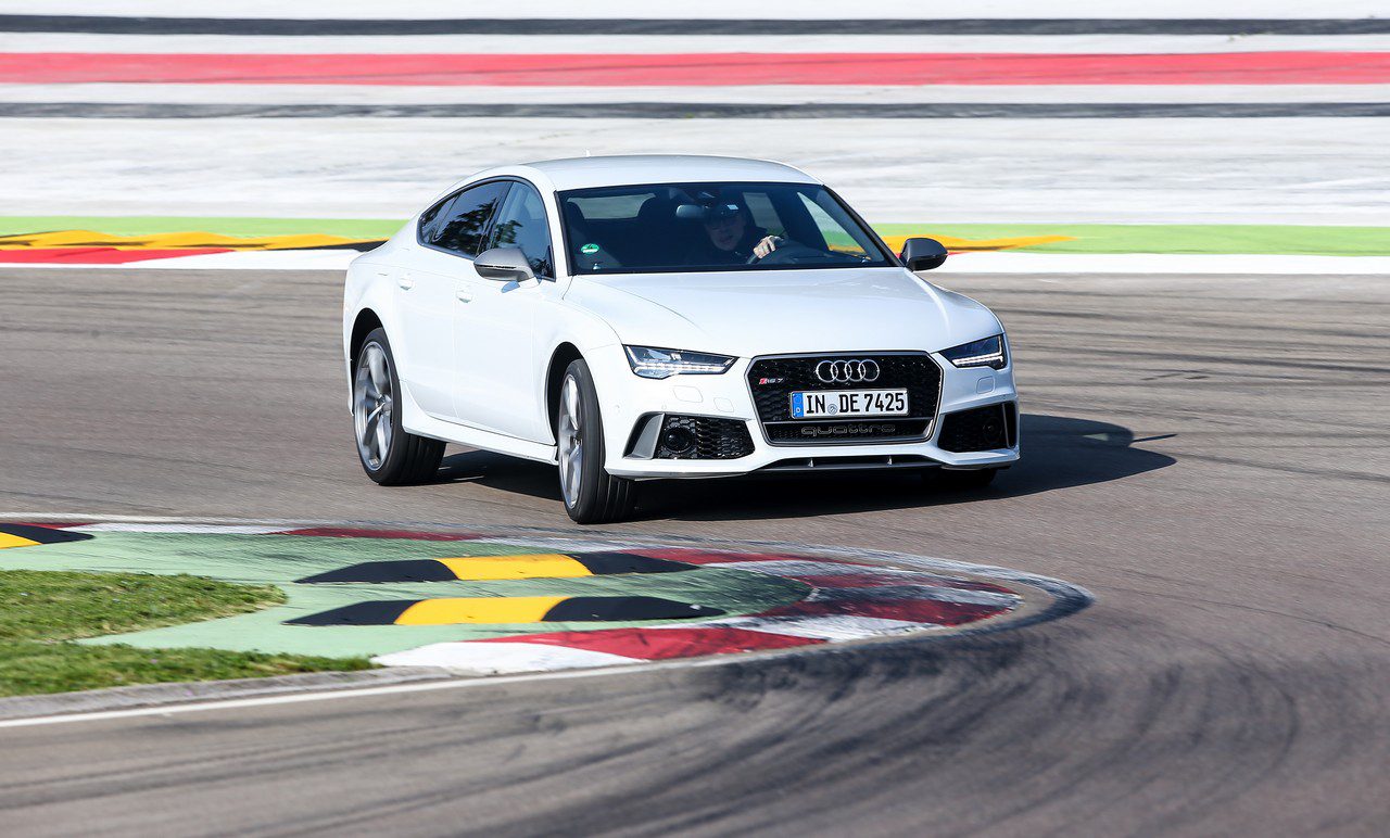 La RS 7 in pista ci ha regalato le medesime sensazioni che abbiamo provato sulla sorella RS 6. In fin dei conti la meccanica alla base è la stessa, il peso è praticamente identico e lo stesso vale per le dimensioni. Anche questa vettura era equipaggiata con i freni carboceramici ma la corsa del pedale, durante le intense frenate, ci è parsa discretamente piĂą lunga. Come sulla RS 6 il motore sale di giri in modo talmente veloce da togliere il fiato. La vettura, inoltre, divora una dietro l’altra le curve facendoci dimenticare di essere alla guida di una vettura del peso di due tonnellate. L’anteriore fulmineo e lo sterzo preciso ci fanno sentire come su due binari mentre il posteriore, se debitamente provocato allarga la traiettoria e aiuta a chiudere la curva con ancora piĂą velocitĂ . Anche la RS 7 ci è parsa leggermente meno divertente da guidare rispetto alla sorellina RS 3 che per ora detiene il primo gradino del podio.