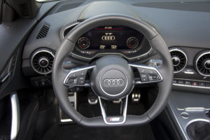 I comandi del climatizzatore sono celati nelle caratteristiche bocchette circolari e la cintura di sicurezza offre l’utilissima integrazione del microfono per il vivavoce, indispensabile accorgimento per una cabriolet! Oltre al comodissimo terminale MMI sulla consolle centrale, l’Audi Virtual Cockpit offre un’esperienza di guida davvero piacevole: nitidezza e completezza delle informazioni eccellenti, grazie al monitor da 12,3” di tipo TFT (Thin Film Transistor). Undici le colorazioni disponibili e tre differenti soluzioni per gli interni. Scopriamo la TT Roadster 2.0 TDI ultra, le novità nel dettaglio e le sue prestazioni, con dei consumi da record. Completano la gamma la TT e la TTS con motore TFSI che con i suoi 310 CV e la trazione integrate permanente quattro rappresenta a dovere il top di gamma.