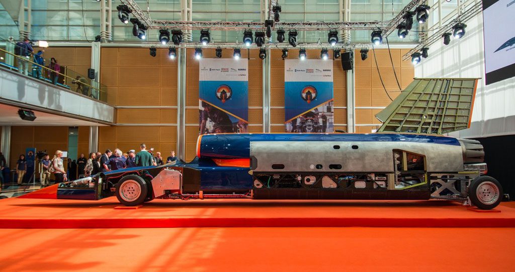Il Bloodhound SSC (Supersonic Car) Team ha presentato al pubblico l’automobile in forma pressoché completa, per la prima volta, dal 24 al 26 settembre con una sorta di… vernissage a East Wintergarden, nel quartiere londinese di Canary Wharf. L’occasione ha fornito l’opportunità, oltre che di vedere l’auto da vicino, di apprendere nuove informazioni sul programma.