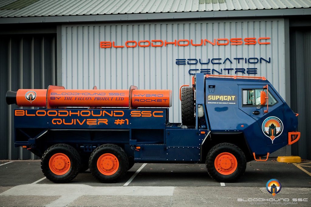 Auto Tecnica ha gia avuto modo di occuparsi del Bloodhound (segugio o cane di Sant’Uberto) – più recentemente sul N. 401, gennaio 2015 – poiché quello che qualche giornalista ha prontamente definito “un aeroplano che non vola” presenta considerevoli spunti d’interesse. Si tratta, infatti, di un’automobile destinata a conquistare il primato assoluto di velocità al suolo, attingendo largamente a tecnologie aerospaziali e, in particolare, ad un turboreattore a doppio flusso Eurojet EJ200, uno dei propulsori che, in due unità, spingono il caccia Eurofighter EF-2000 Typhoon. Quindi un’automobile “sui generis”, nata da un programma britannico che, tuttavia, ha anche qualche cosa di italiano, proprio in quel motore EJ200, coprodotto dalla torinese Avio.