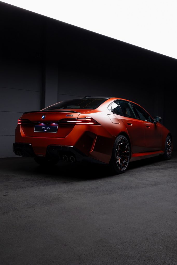 L’esterno si distingue ulteriormente dalle altre BMW M5 per i cerchi M Dual-Spoke Bicolor da 20 e 21 pollici con dettagli arancioni dipinti a mano, mentre le pinze dei freni sono rifinite in oro opaco.
