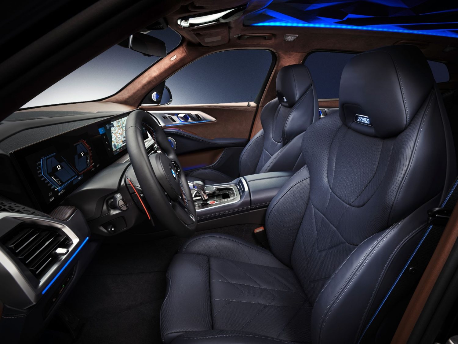 BMW aggiorna la XM Label anche sul piano stilistico, mantenendo il carattere del SUV ma aggiungendo nuove opzioni BMW Individual, tra cui la vernice Frozen Tanzanite Blue metallic, la griglia M con contorno nero lucido, una nuova Welcome Light Animation e cerchi di serie da 22” bicolore, opzionali da 23” neri.