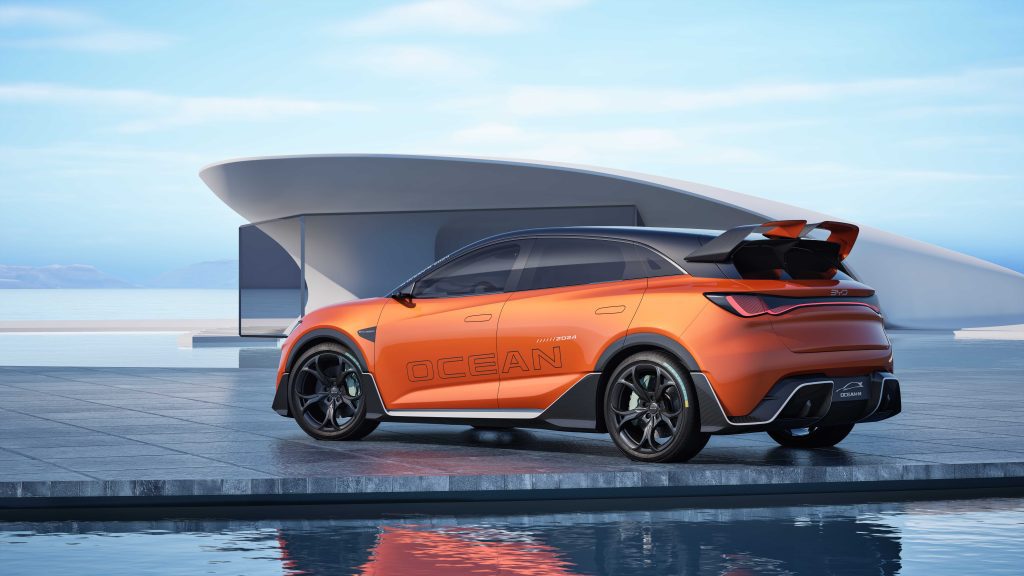 Al di là del fatto che si trattasse di una concept car, e quindi con caratteri enfatizzati, la Ocean M esposta a Pechino ha un design dal tono decisamente sportivo, accentuato dallo spoiler posteriore e da un diffusore integrato nel paraurti. Secondo la stessa BYD, in effetti, il modello dovrebbe diventare la sua prima due volumi ad alte prestazioni a trazione posteriore.