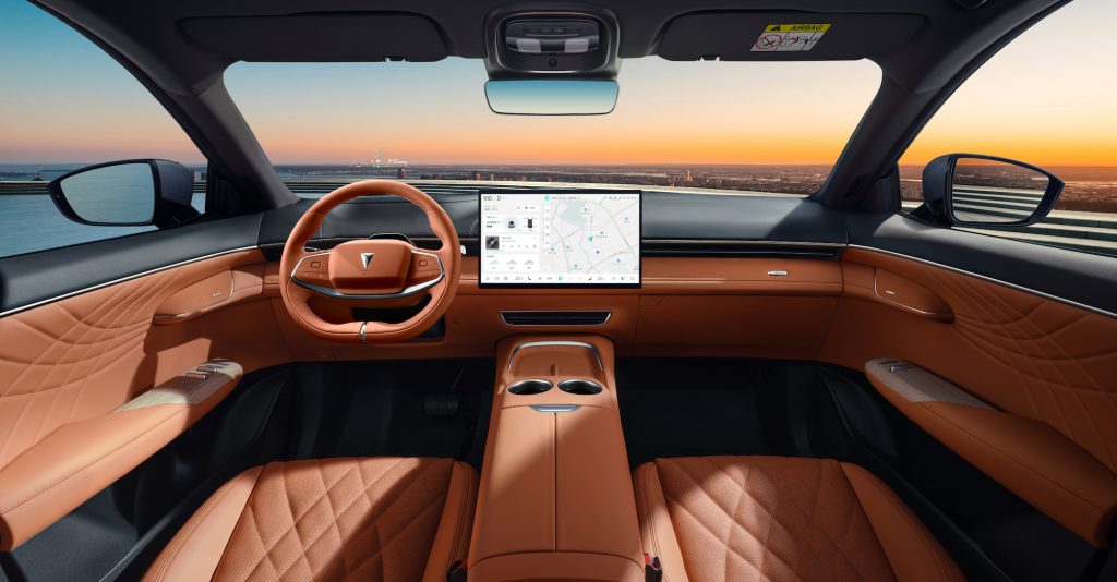 La plancia, chiaramente di ispirazione “Tesla”, concentra ogni tipo di comando sul sistema “Intelligent cockpit”, un display da 2,5K ultra-HD orientabile da 15,4” che lascia a chi guida i dati essenziali sull’head-up display personalizzabile con realtà aumentata.