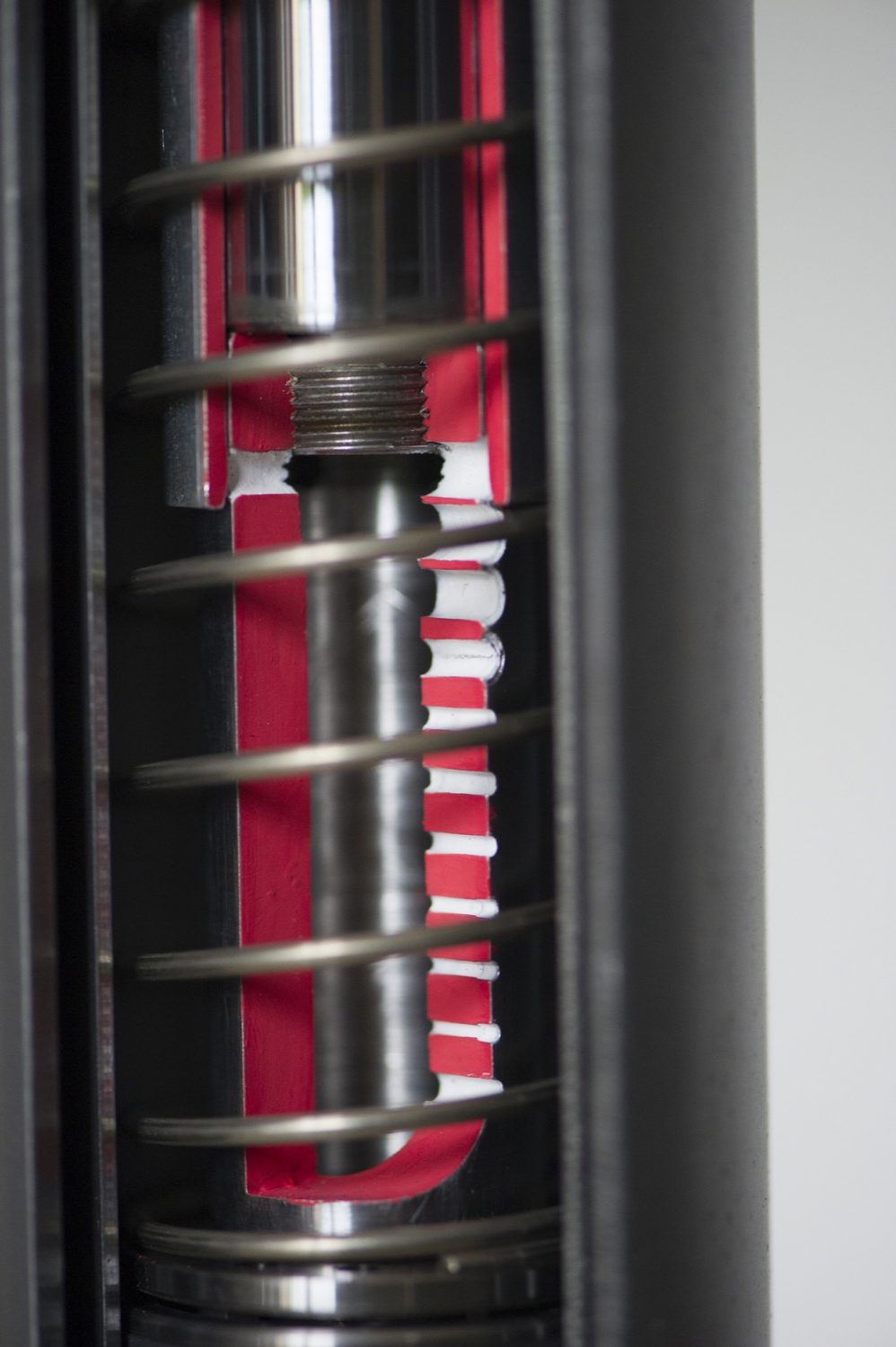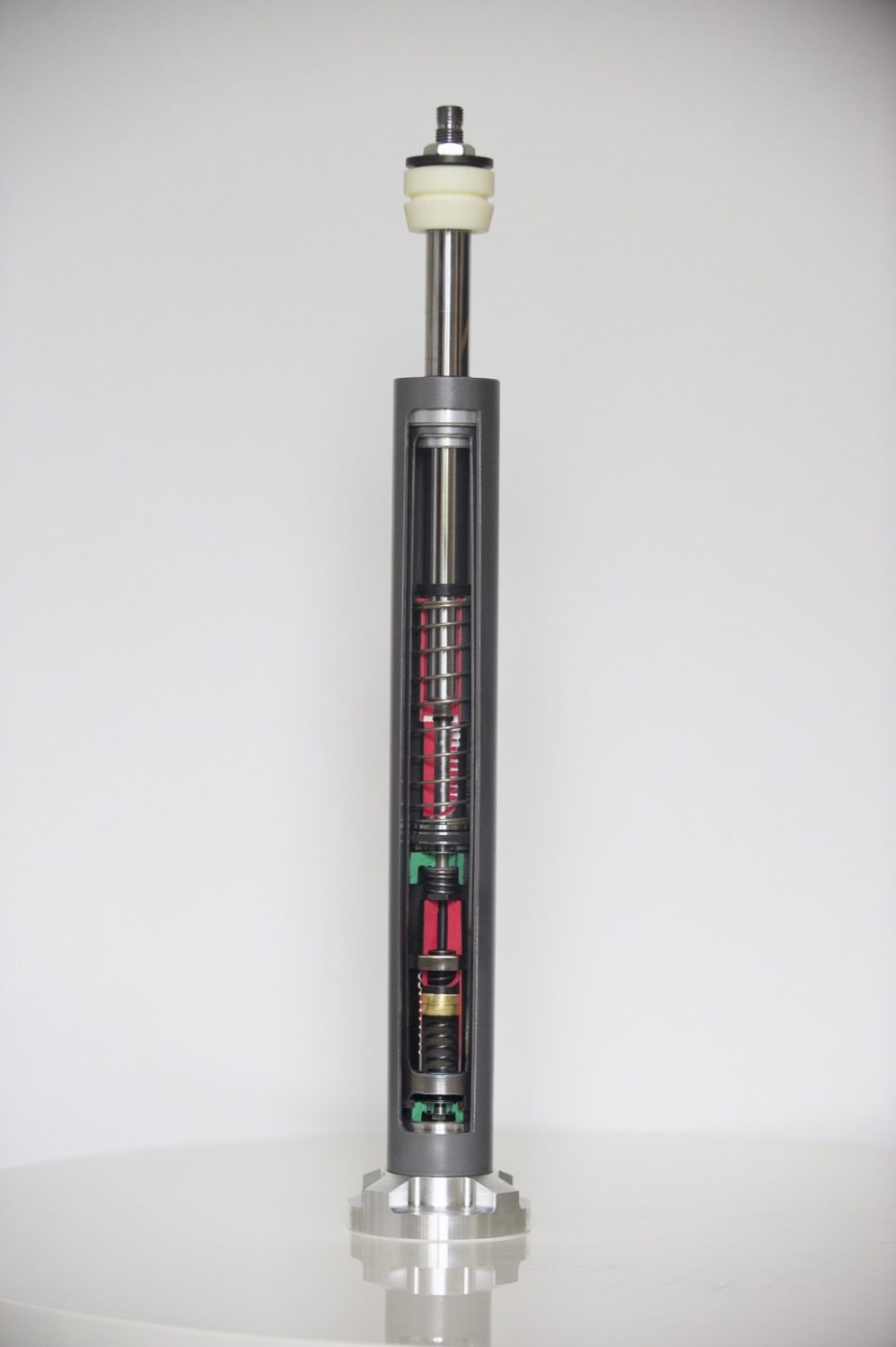 progressivi: il principio di funzionamento si basa sull’aggiunta di due smorzatori, appunto, idraulici che lavorino uno in fase di estensione e l’altro in fase di compressione. In tal modo la sospensione può lavorare in funzione delle sollecitazioni, controllando i movimenti verticali a seconda dell’accelerazione a cui essi sono sottoposti. In fasi di compressione ed estensione lievi, molla ed ammortizzatore controllano insieme i movimenti verticali senza ausilio; in fasi di compressione ed estensione più pronunciate, al contrario, la molla e l’ammortizzatore funzionano insieme allo smorzatore che ha il compito di rallentare il movimento in maniera progressiva evitando i bruschi arresti di fine corsa.