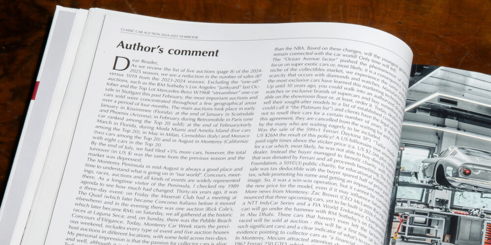 Il testo, per dare massima diffusione al volume, è in inglese ma questo non rappresenta un limite per chi non lo mastica: numeri e grafici parlano un linguaggio universale e rendono i contenuti di ‘Classic Car Auction Yearbook 2024-2025’ accessibili a tutti.