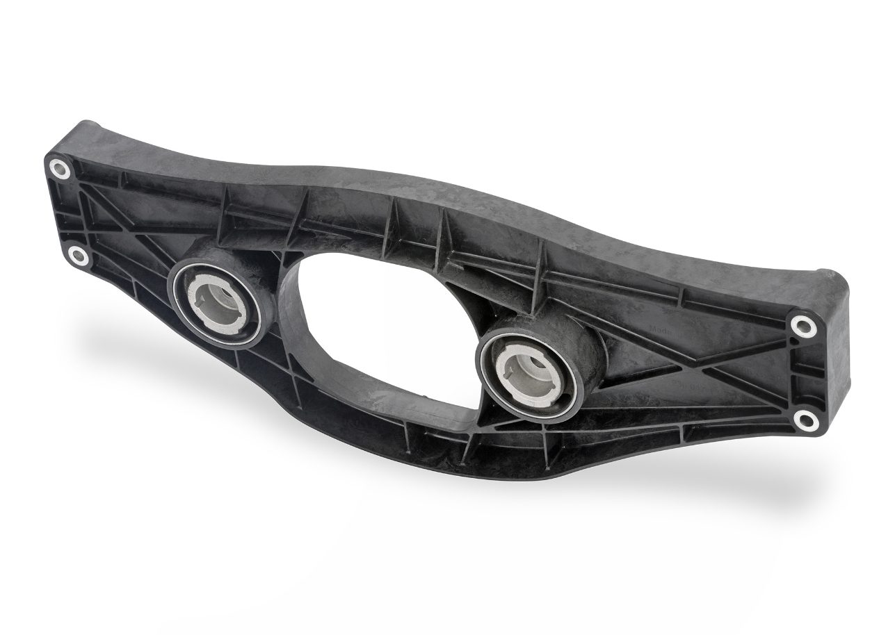 ContiTech ha esperienza nelle costruzioni in materiali leggeri che possano sostituire il metallo. E’ il caso del braccio di supporto della trasmissione realizzato in Ultramid, una poliammide caricata vetro della BASF, già applicato sulla Mercedes-Benz Classe S. Rispetto alla versione in alluminio pressofuso il risparmio di peso è del 25%. La ContiTech utilizza l’Ultramid dal 2006 e nel 2013 ha prodotto oltre tre milioni di supporti motori in questo materiale che si propone ormai come un valido sostituto dell’alluminio anche per impieghi gravosi e in ambiente ostile. L’eccellente processo di stampaggio sviluppato in questi anni consente una qualità elevata e una stabilità dimensionale assoluta, fattori non sempre scontati nello stampaggio a iniezione di materiali term0plastici.