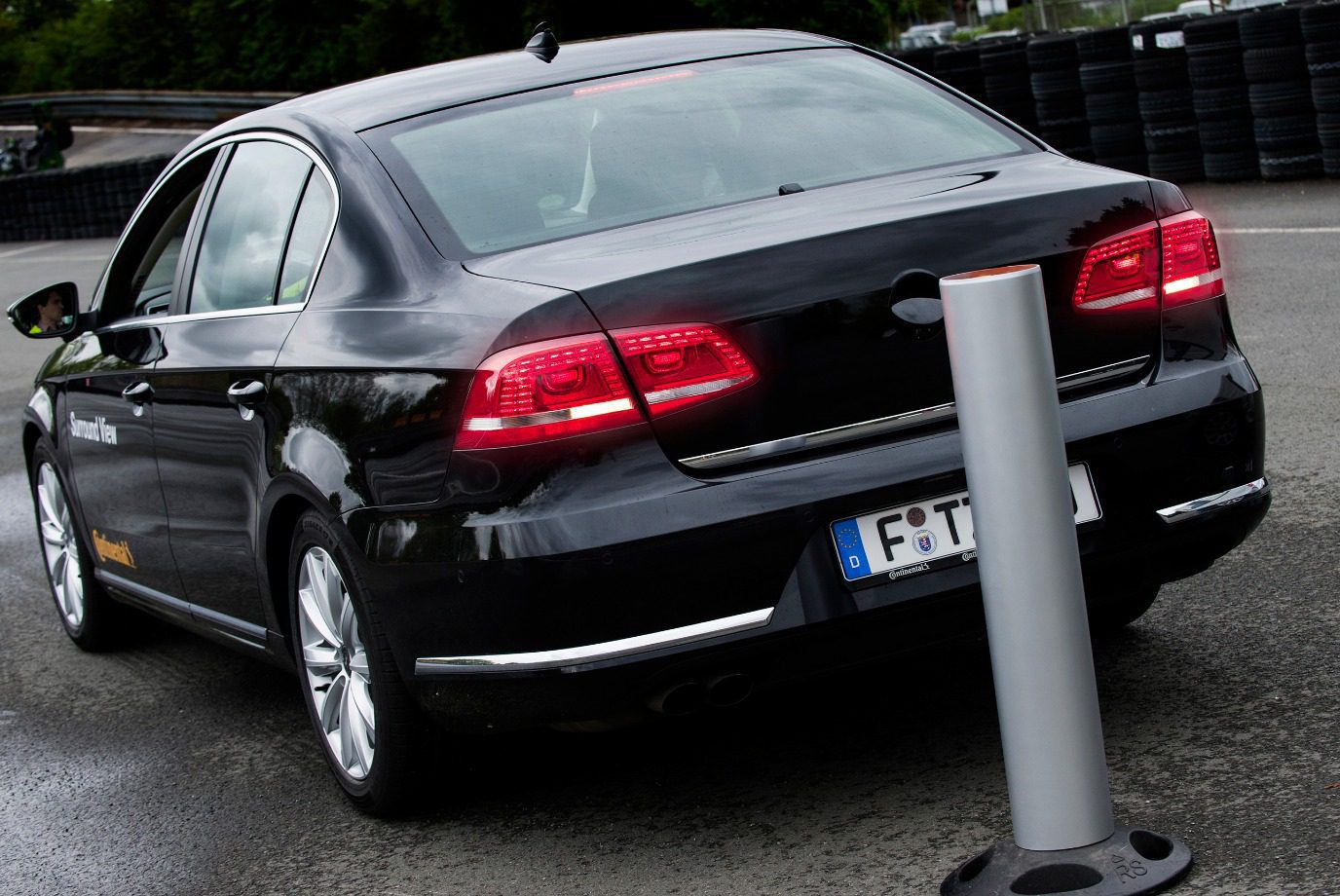 Esistono già sistemi applicati su vetture di serie che funzionano egregiamente quando il parcheggio avviene in un vano parallelo al senso di marcia della vettura. Le telecamere Surround View di Continental che controllano tutto il perimetro della vettura possono però fare ben di più. Abbiamo personalmente verificato l’inserimento automatico in un vano posto a 90° rispetto alla direzione di marcia (tipico esempio i posteggi dei centri commerciali). Oltre a questo, è possibile selezionare la modalità di parcheggio automatico dal touch screen sulla vettura, scendere, attivare l’app (sviluppata da Continental) sul proprio Smartphone e assistere dall’esterno al parcheggio della nostra vettura. Nella versione provata, al termine dell’operazione si è inserito automaticamente il freno di stazionamento elettrico ma il motore è rimasto in moto e le porte aperte. La versione definitiva provvederà anche all’arresto del motore e alla chiusura delle portiere in automatico.