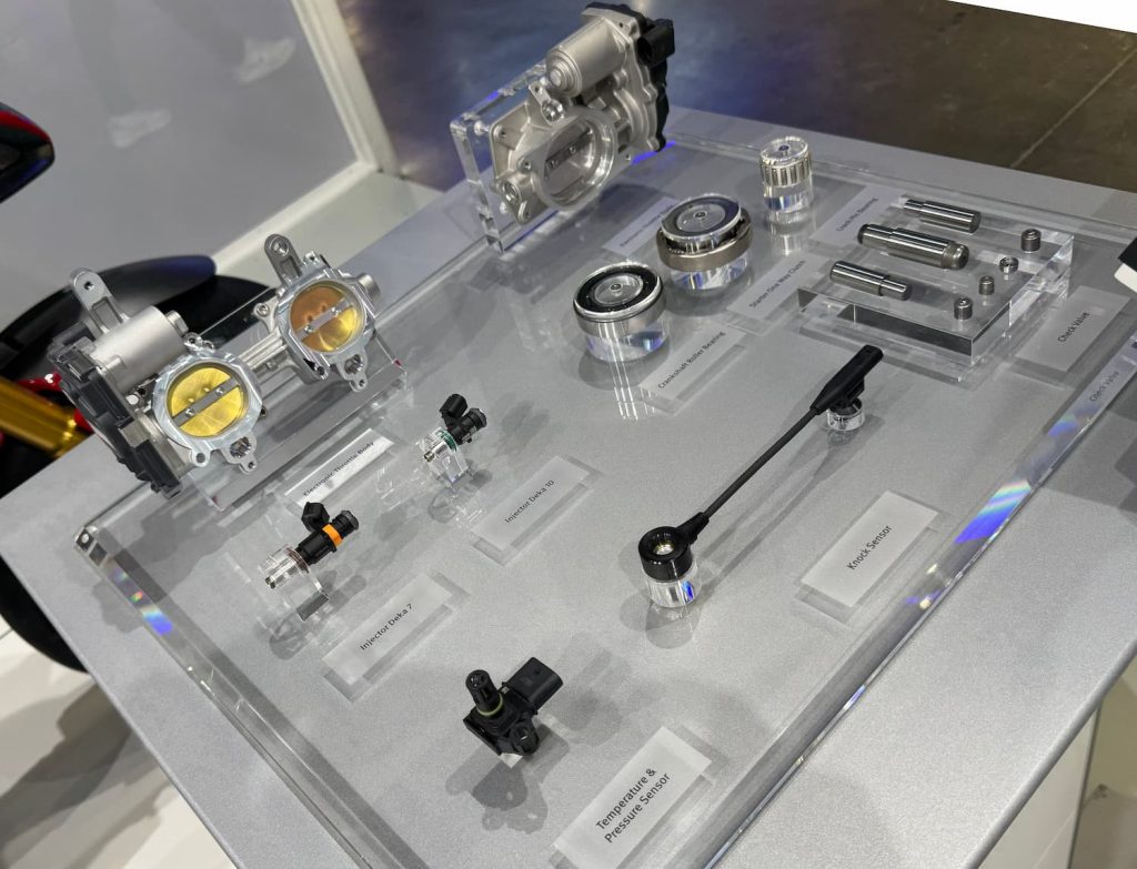 Oltre al motore elettrico, il veicolo esposto era dotato dell’unità di controllo elettronica (eDCU), del sensore induttivo di posizione del rotore, del sensore di runaway termico della batteria e di un sistema avanzato di gestione della batteria (BMS).