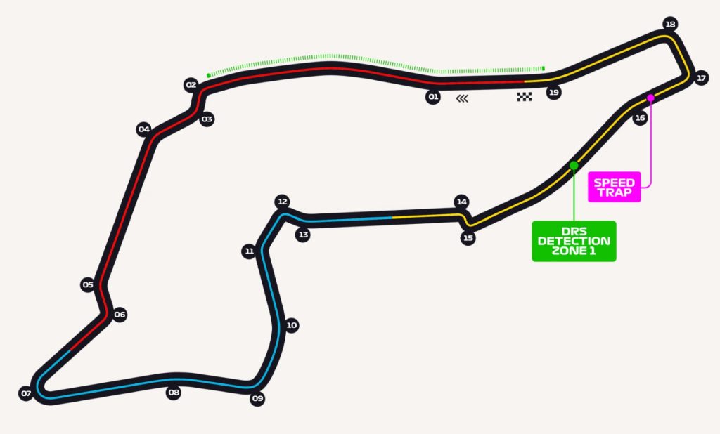 Le curve che influenzano maggiormente l’assetto sono la variante del Tamburello (T2, T3, T4), dove ci sono tre curve in successione e quindi occorre avere una vettura perfettamente bilanciata, e le Acque Minerali (T11, T12, T13), dove la monoposto è pesantemente caricata sulle ruote esterne proprio quando il pilota preme il pedale del freno. In questo modo si va a sollecitare tantissimo gli pneumatici nell’aderenza combinata, chiedendo un’elevata forza longitudinale quando sono già impegnati in senso laterale.