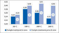 Come avvenne negli anni ’80, dove l’amianto fu sostituito con almeno una decina di nuovi ingredienti, è arrivato ora il momento anche per il rame di andare in pensione. Le nuove pastiglie “copper-free” sono infatti nate per rispondere alle direttive che entreranno in vigore negli USA tra qualche anno dove la percentuale di rame dovrà essere inizialmente inferiore al 5% del peso totale della pastiglia nel 2020 per poi arrivare a un contenuto dello stesso inferiore allo 0.5% nel 2025.