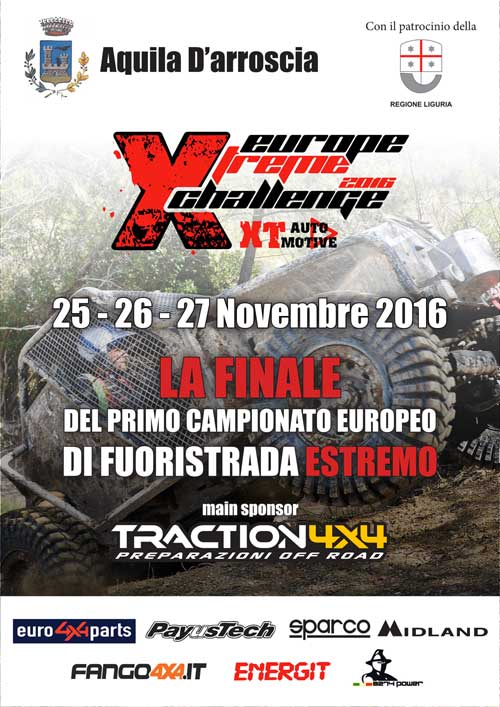 Appuntamento con la finale EXC 2016 dal 25 al 27 Novembre a Aquila d’Arroscia, in provincia di Imperia. Sui tracciati dell’entroterra ligure si assegneranno i titoli di Campione Europeo per le categorie Prototipi e Preparati. L’evento, patrocinato dalla Regione Liguria, ospiterà anche una fiera dedicata al 4×4 e ai suoi appassionati.