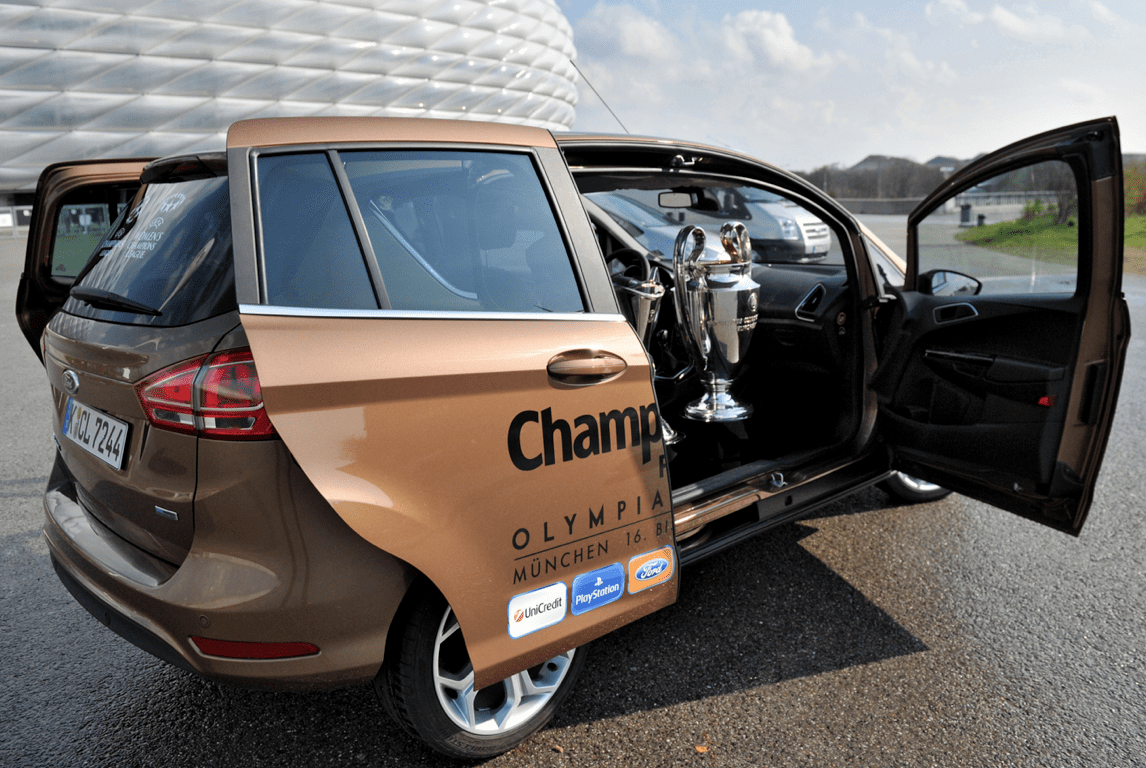 Ford celebra 20 anni di partnership ufficiale con UEFA Champions League; il trofeo è stato portato in mostra per le strade di Monaco a bordo della nuovissima B-MAX