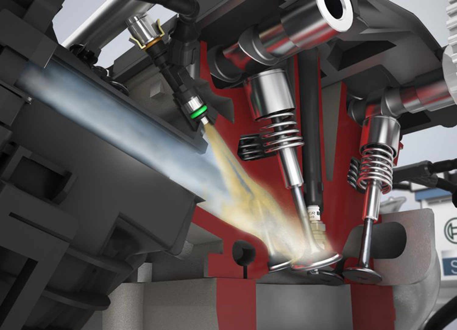 Iniettare benzina all’interno della camera di combustione pone difficoltà che ormai sono state superate. D’altro canto, i vantaggi nell’iniettare direttamente in camera di combustione sono numerosi, anche se qui di seguito ci limitiamo ad indicare i più evidente. L’azione di iniezione del carburante avviene attraverso un processo di evaporazione che assorbe calore, provocando un raffreddamento della carica che quindi consente di aumentare la densità della stessa. Al contrario, nel caso di iniezione indiretta, il fluido di lavoro, cioè il combustibile, assorbe calore dalle pareti dei collettori, riscaldandosi prima di entrare in camera di combustione. Il raffreddamento della carica consente anche di elevare il rapporto geometrico di compressione e, se il sistema è tarato in modo ottimale, la combustione avviene ancora prima che il fluido stesso tocchi qualche componente meccanico. Si capisce immediatamente il valore dell’efficienza di un sistema siffatto. A questo punto possiamo anche sottolineare la maggior resistenza alla detonazione e la maggiore velocità di combustione. Quest’ultima caratteristica consente di elevare il regime massimo di giri. Sempre grazie all’iniezione diretta è possibile ottenere minori emissioni nella fase di warm-up del motore. Pensate ai casi di accensione a freddo.