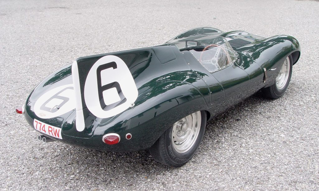 Per gli amanti delle vetture da competizione, la D-Type è uno dei modelli più famosi della gloriosa tradizione Jaguar. Prodotta dal 1954 al 1957, il progetto originario deriva da una rivisitazione del telaio e del motore della C-Type, mentre la carrozzeria poteva contare su una linea ancora più aerodinamica. Il motore era il classico 6 cilindri in linea di 3.442 cc a doppio albero a camme in testa e alimentato da tre carburatori doppio corpo Weber; nella versione da gara, raggiungeva i 285 CV e grazie all’accurata aerodinamica e ad un peso di soli 800 kg. permetteva alla D-Type di raggiungere i 270 km/h. Fondamentale per la supremazia in gara, come il dominio della alla 24 Ore di Le Mans del 1955, fu l’adozione di serie dei freni a disco della Dunlop. Da ricordare che la stessa vettura mostrò la sua supremazia tecnica, vincendo anche le edizioni della 24 Ore di Le Mans del 1956 e del 1957.