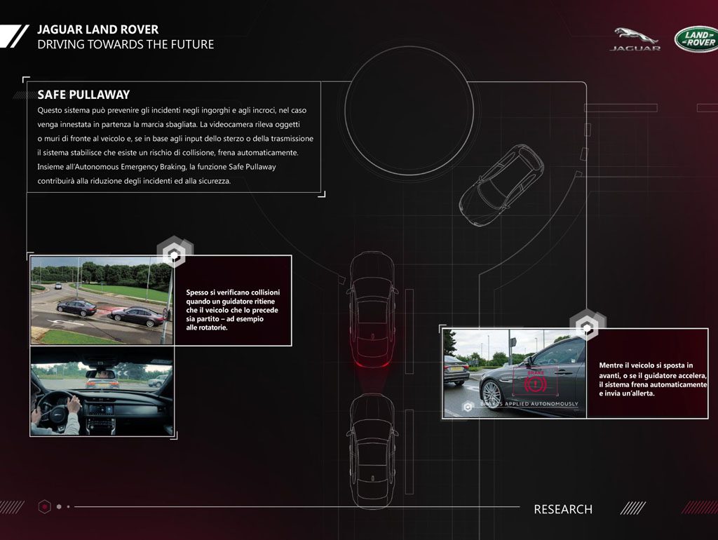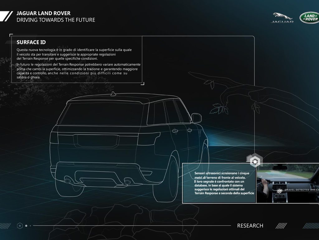 Per ottenere questi livelli di capacità autonome all-terrain, i ricercatori di Jaguar Land Rover si sono concentrati sullo sviluppo delle tecnologie dei sensori, che costituiranno gli occhi dei futuri veicoli autonomi. Poiché i sensori sono sempre attivi, ed i loro livelli di percezione sono migliori di quelli del guidatore, il sistema sarà in grado di garantire al veicolo tutta l’intelligenza artificiale necessaria per pianificare la rotta da seguire, su qualsiasi superficie.