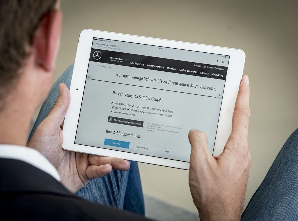 Nel 2013 Mercedes-Benz è stata la prima Casa automobilistica a livello mondiale a inaugurare, con il suo progetto pilota ad Amburgo, un web store per la vendita di vetture nuove su Internet. In questo frangente, la consegna del veicolo da parte della filiale locale era limitata ai clienti residenti ad Amburgo e dintorni. Nel frattempo la Casa di Stoccarda ha esteso i propri contatti con clienti e persone interessate anche in altri Paesi, introducendo una piattaforma di vendita su Internet: dal 2014 è disponibile a Varsavia su www.online-store.mercedes-benz.pl un web store regionale con proposte di leasing per una selezione di autovetture della Stella. Anche smart, brand simbolo della mobilità urbana, utilizza la vendita on line. Dal dicembre 2015 la più piccola vettura della gamma di prodotti Mercedes-Benz Cars può essere acquistata in Italia su Internet e visionata virtualmente su smartforstore.it. smart è così la prima Casa automobilistica a livello mondiale ad abbinare un web store per vetture nuove a uno showroom virtuale.