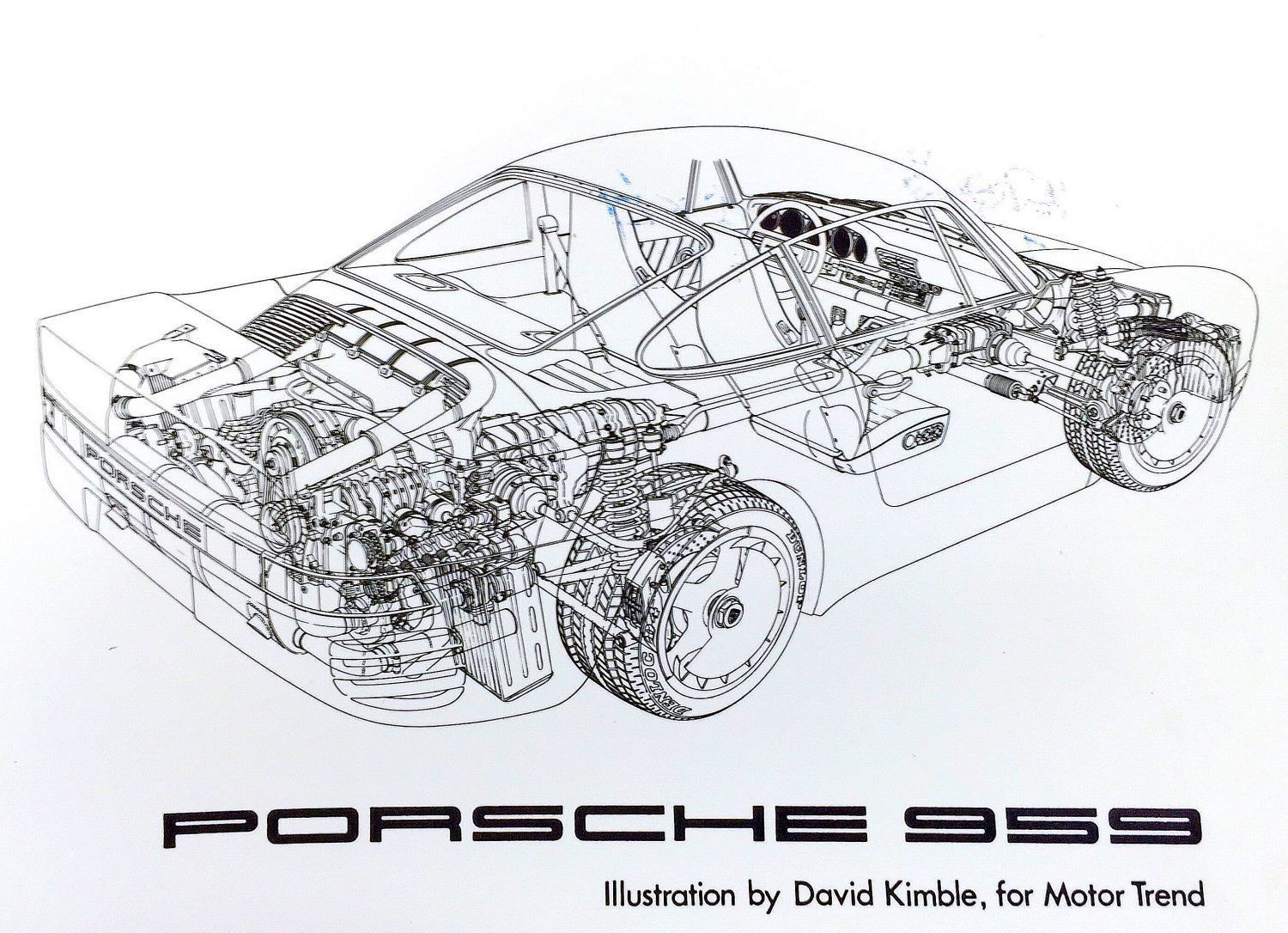 La Porsche 959 più costosa di sempre – Questa Porsche 959 sarà venduta alla prossima Gooding & Company’s Pebble Beach auction, un’asta in cui si prevede il raggiungimento di una cifra di oltre $1,5 milioni di dollari per un’auto tra le più interessanti prodotte dalla casa di Stoccarda. Il numero totale di unità prodotte varia dalle 329 alle 337. Purtroppo non ci sono informazioni precise a riguardo. Si tratta di un modello del 1988 in allestimento “Komfort”, la designazione utilizzata da Porsche per distinguere il modello stradale dalla versione “Sport” destinata ai tracciati. Sotto il cofano trovate un 2.8 litri con sei cilindri disposti su due bancate a 180° tra loro. Grazie alla doppia sovralimentazione (due turbocompressori) la potenza raggiunta è di 444 HP. I test di allora raccontano di un’accelerazione da 0 a 100 km/h coperta in meno di 4 secondi e una velocità massima di 306 km/h. Ma se tutto questo vi ha già impressionato, vi invitiamo a tenere sotto controllo l’entusiasmo, perché il vero punto forte è la tecnologia nascosta sotto il pianale dove alloggia una sofisticata trasmissione integrale capace di gestire il trasferimento di coppia a seconda delle condizioni di marcia. L’asta si terrà ad agosto e il prezzo stimato a cui verrà venduta dovrebbe essere compreso tra gli $1.6 milioni e gli $1.8 milioni. Vi alleghiamo qui di seguito un’immagine tecnica tratta dai nostri archivi in cui potrete apprezzare la complessità tecnica di questo mostro sacro prodotto nella Germania di fine anni ’80.