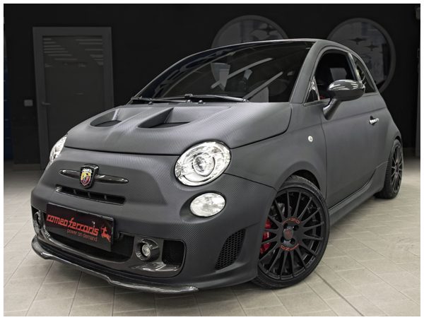 La maniglia del portellone, la cornice del logo Abarth posteriore, le cover paraspruzzi posteriori e i montanti in stile 695 Tributo Ferrari si aggiungono così alla lama anteriore da posizionare sotto il paraurti, all’inserto in carbonio per la bocca centrale, al fregio anteriore, alla sottile presa d’aria del paraurti e alle calotte degli specchietti, ai due estrattori per il paraurti posteriore (originale o predisposto per lo scarico centrale), al cofano in carbonio, al portellone completo, allo spoiler lunotto e alla plancia dell’abitacolo che comprende la bocchetta di aerazione lato guida e la plancia centrale.