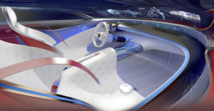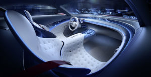Degna di nota è anche la lussuosa finitura in pelle capitonné. Qui la tradizione incontra la tecnologia del futuro: i bottoni, solitamente rivestiti in pelle, sono sostituiti da display minimalistici con sensori integrati, i cosiddetti ‘Body Sensor Display’. Questi sensori analizzano i passeggeri monitorandone, ad esempio, le funzioni vitali. Possono così attivare funzioni comfort come la climatizzazione dei sedili o la funzione di massaggio oppure adeguare la conformazione del sedile al suo occupante. I sensori incorporati nell’imbottitura rilevano, inoltre, l’incidenza della luce, il colore dei vestiti e la temperatura ambiente e utilizzano queste informazioni per creare all’interno dell’abitacolo nuovi scenari di luce coinvolgenti. Il lusso declinato in chiave moderna di cui questa concept car si fa interprete è sottolineato dalla possibilità di passare alla modalità digitale autonoma. Altra chicca è costituita dal tunnel centrale trasparente sospeso, che permette agli occupanti di visualizzare il flusso di energia elettrica del propulsore.