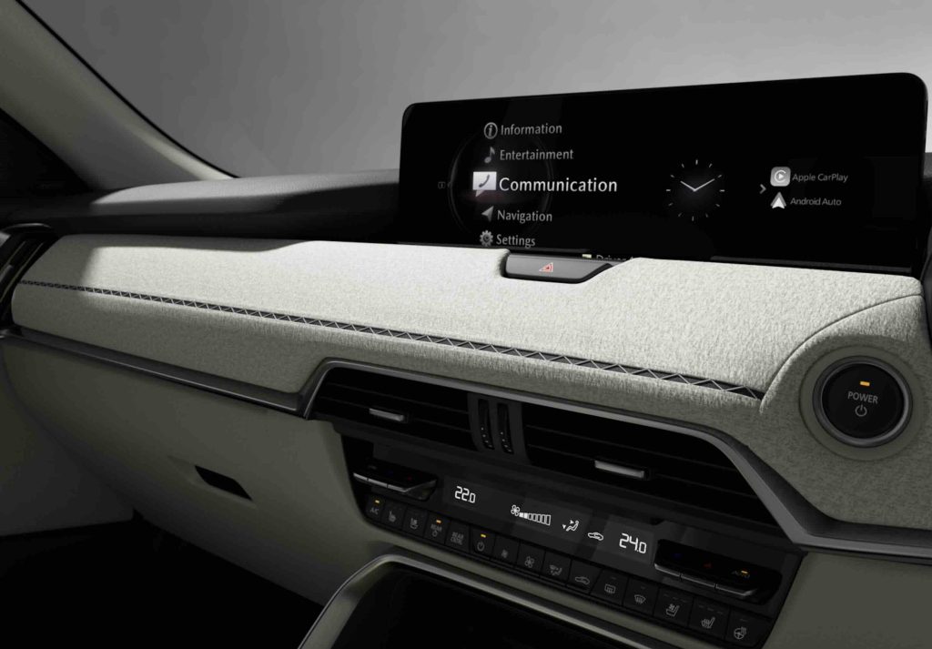 Le versioni Takumi (nome che identifica gli artigiani giapponesi) di CX-60 e CX-80 offrono materiali pregiati combinati con tessuti giapponesi, e dettagli come le cuciture Musubu, una tecnica caratterizzata da un piccolo spazio che consente il movimento naturale, simbolo di armonia tra funzionalità ed estetica.