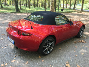 Migliorare qualcosa di ben riuscito e rendere la quarta generazione del modello ancora più divertente è stata una sfida che gli ingegneri Mazda hanno messo a confronto con la loro vasta esperienza sviluppando il telaio Skyactiv-Chassis per conferire quella maneggevolezza straordinariamente piacevole di MX-5 anche alle altre Mazda di nuova generazione. Il loro obiettivo: migliorare ulteriormente la confidenza che la iconica roadster naturalmente ispira trasferendo i principi di Skyactiv nel fertile terreno della sua architettura a motore anteriore centrale e trazione posteriore. I progettisti hanno mantenuto le sospensioni a doppio braccio oscillante davanti e multilink dietro, rivedendone i vari componenti in nome di una robustezza leggera e di una stabilità migliorata, soprattutto in curva. Per esempio, hanno aumentato l’angolo di incidenza anteriore per migliorare la trazione e ridurre il sottosterzo. Invece una nuova struttura ad architrave per la traversa posteriore migliora la rigidità della sospensione, mentre il diverso posizionamento delle articolazioni posteriori ha migliorato la controllabilità in curva. Il modello top di gamma che abbiamo guidato montava di serie sospensioni sportive Bilstein.