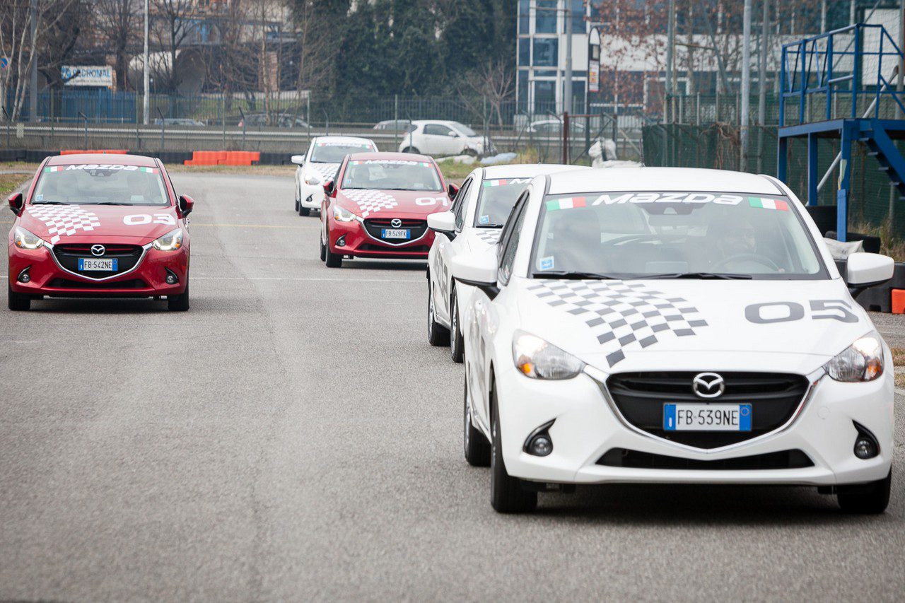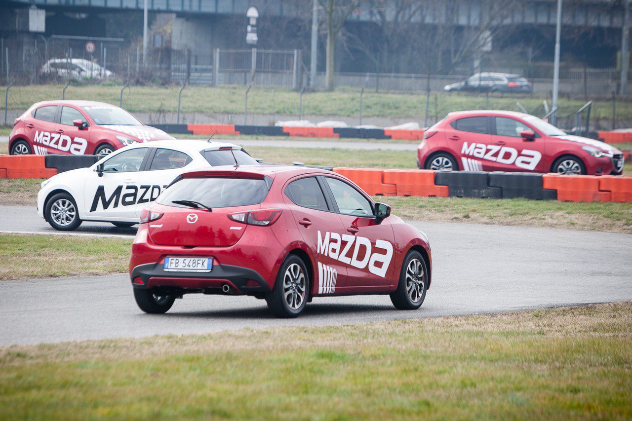 LA PROVA DEI CONSUMI: questa volta il nostro test drive si è svolto in modo leggermente diverso dal solito. Abbiamo, infatti, avuto modo di assaggiare per poco tempo la qualità generale della piccola di casa Mazda essendoci concentrati maggiormente sul discorso dei consumi. E quale miglior modo se non partecipare ad una vera e propria Eco Race tra Mazda2 tutte motorizzate con il nuovo 1.5 SKYACTIV-D? Bene, sfruttando l’ospitalità del kartodromo di Rozzano, nell’hinterland Milanese, ci siamo sfidati in gruppi da quattro per decretare quale squadra fosse riuscita a consumare meno all’interno dell’insolito tracciato. Adottate le giuste strategie, la modalità di guida più parsimoniosa possibile e alcuni piccoli accorgimenti siamo riusciti a ottenere un consumo medio dell’ordine dei 3,2 litri ogni 100 chilometri (31,25 chilometri al litro), un valore di sicuro estremo e in condizioni al limite del ripetibile ma che fanno ben capire la bontà del nuovo propulsore e l’ottimo lavoro svolto dagli ingegneri giapponesi. Nel corso di questa inconsueta prova il piccolo propulsore si è dimostrato di ottima fattura. Messo infatti sotto torchio e costretto a girare al minimo dei giri o comunque con un filo di gas, il 1.5 litri di Mazda ci ha regalato un comfort di guida elevato grazie alla completa assenza di vibrazioni, all’ottima insonorizzazione e al lodevole lavoro di filtrazione tra telaio e motore. Un turbodiesel elastico, lineare, fluido capace di girare praticamente con un benzina aspirato. Un propulsore insomma che difficilmente vi permetterà di percorrere meno di 20 chilometri con un litro di gasolio e che al tempo stesso non lesina dal regalarvi qualche emozione o quel po’ di brio necessario in una guida più allegra.