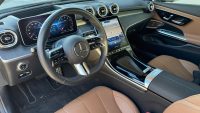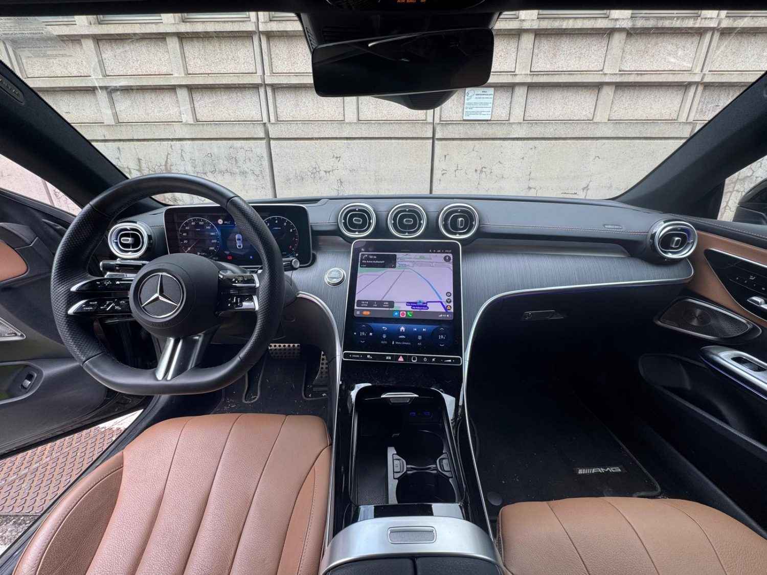 Classica fuori, grazie a linee pulite e proporzioni impeccabili, la Mercedes CLE accoglie gli occupanti in un ambiente moderno e curato. La presenza di un grande monitor da 12”3 dietro al volante per la strumentazione digitale e di un generoso touchscreen centrale da 11”9 (posizionato verticalmente) rendono l’abitacolo particolarmente attuale e ben si sposano con elementi più “classici” come le bocchette dell’aria circolari o le forme sinuose di certi rivestimenti.