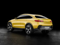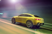 Mercedes GLC Coupé da emozione. La Casa della Stella presenta una concept car di Suv compatta, la GLC Coupé, che segna la via maestra che la casa della Stella intende seguire nella produzione di Sport Utility nei prossimi anni. Forse più di altre show car, questa Suv esprime la metamorfosi del linguaggio formale dei designer tedeschi, in ogni caso già iniziato con la GLE Coupé: realizzare un veicolo che sia una via di mezzo tra una Suv polifunzionale e una coupé. E Mercedes non scherza, intende portare alla produzione questa vettura entro poco tempo. Vediamola da vicino: La GLC Coupé è lunga 4,73 metri, con un passo di 2,83 metri. Le linee sono assai muscolose e affusolate, linee messe in risalto ancor più dagli enormi cerchi da 21”. Immancabile, come peraltro il lignaggio della vettura obbliga a fare, l’adozione dei fari Led High performance, che racchiude, in un unico modulo luci diurne e indicatori di direzione, alloggiati nella parte superiore, ovvero le “sopracciglia”. Sotto ci sono tre lenti sistemate su supporti orientabili (con funzione di luci anabbaglianti, luci abbaglianti, luci di assistenza alla svolta e luci attive), che però danno l’effetto di fluttuare nello spazio tridimensionale. La tecnologia con cui sono realizzate le luci, permette di non abbagliare i veicoli che provengono dal senso di marcia opposto, escludendo dal cono di luce i veicoli interessati.