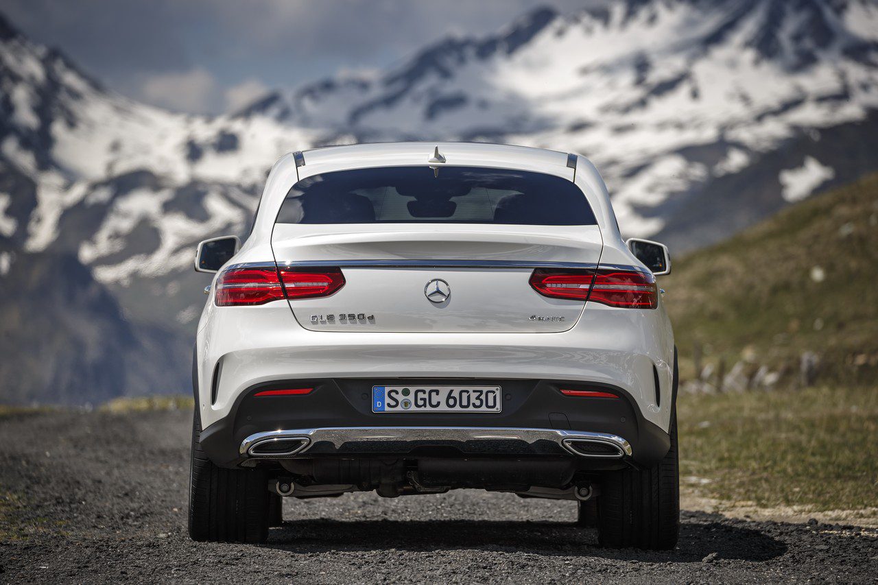 Malgrado la linea da coupé con tetto spiovente, nella zona posteriore alloggiano abbastanza comodamente anche tre adulti e pure la capacità di carico sembra non risentirne con un volume minimo di 650 litri in luogo dei classici 690. A soffrirne è però la visibilità posteriore che si riduce notevolmente a causa del lunotto basso, stretto ed inclinato. Sotto il cofano troviamo le stesse motorizzazioni già viste sulla GLE ad eccezione del quattro cilindri turbodiesel (250d) e della variante ibrida (500e). Anche per quanto concerne i tipi di trazione e di trasmissioni disponibili, le configurazioni sono le medesime previste per la sorella dal tetto alto.