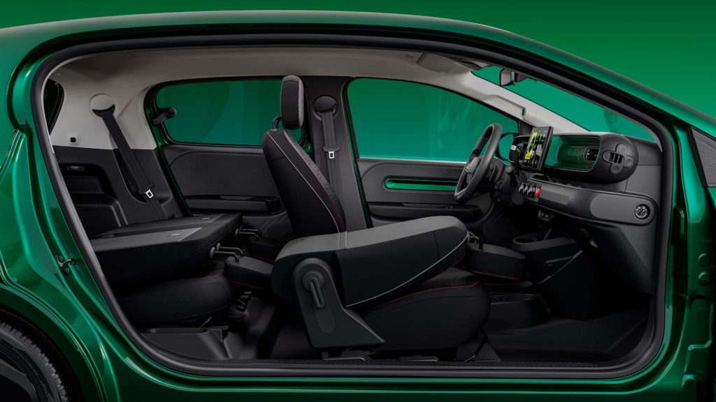 Come sulla Renault 4 E-Tech, anche la Twingo ha la funzione One Pedal che attiva una frenata rigenerativa più vigorosa e consente di guidare nella maggior parte delle situazioni di traffico col solo pedale dell’acceleratore.