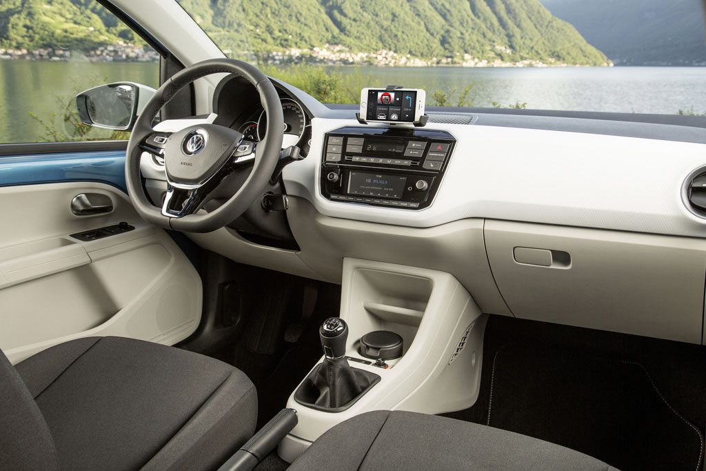 La nuova up! percorre nuove strade anche sul fronte dello stile. I dash pad, per esempio, sono stati rivisti e possono essere personalizzati grazie all’utilizzo di superfici stampate con metodo IML (In-Mould-Labeling). Ma la vettura è up! to date anche in fatto di connettività. Con la radio Composition Phone, di serie per tutta la gamma italiana, è possibile integrare tutti i comuni smartphone con sistema operativo iOS o Android. È sufficiente agganciare lo smartphone nel supporto sopra la consolle centrale e collegarlo alla radio tramite Bluetooth. Non occorre altro. Tramite la App Volkswagen maps+more il guidatore può così utilizzare navigazione (navigazione offline e visualizzazione mappe 2D o 3D), indicatore multifunzione con dati vettura e impianto vivavoce del telefono. La digitazione sullo schermo risulta complicata? C’è la soluzione. Grazie alla funzione di riconoscimento scrittura a mano, è sufficiente tracciare sul display dello smartphone, con undito, le prime lettere della parola cercata e la funzione di completamento automatico della ricerca visualizza subito le prime proposte.