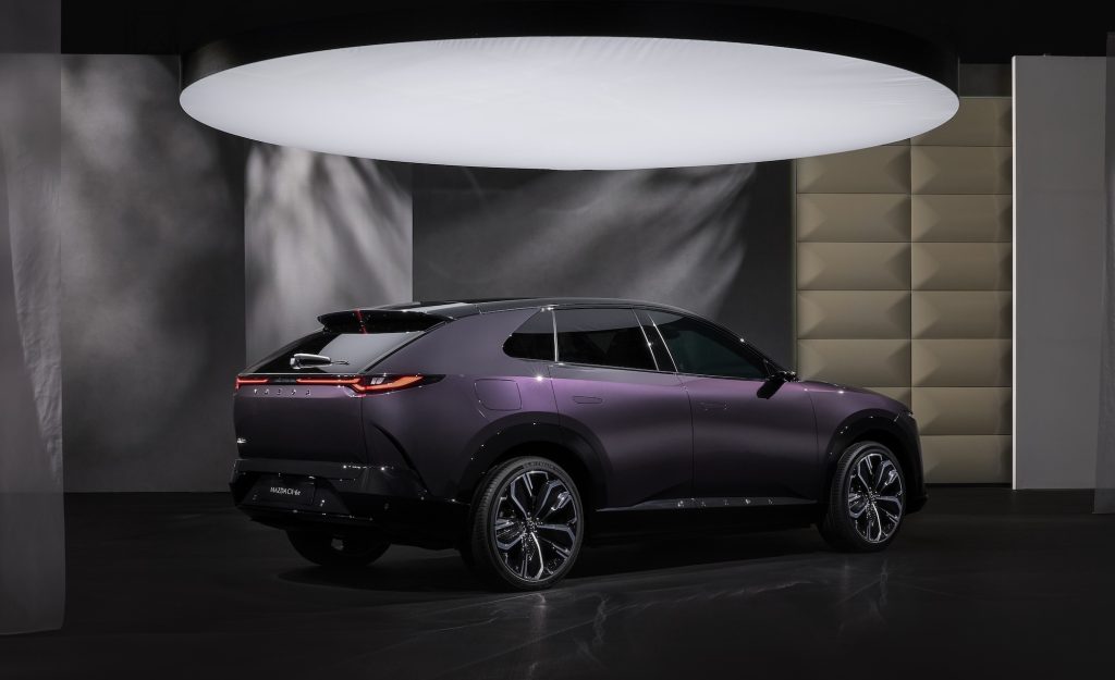 Il Suv, la seconda elettrica di Mazda disponibile in gamma dopo il pensionamento della compatta MX-30, misura 4,85 metri di lunghezza e pesa 2.200 kg.