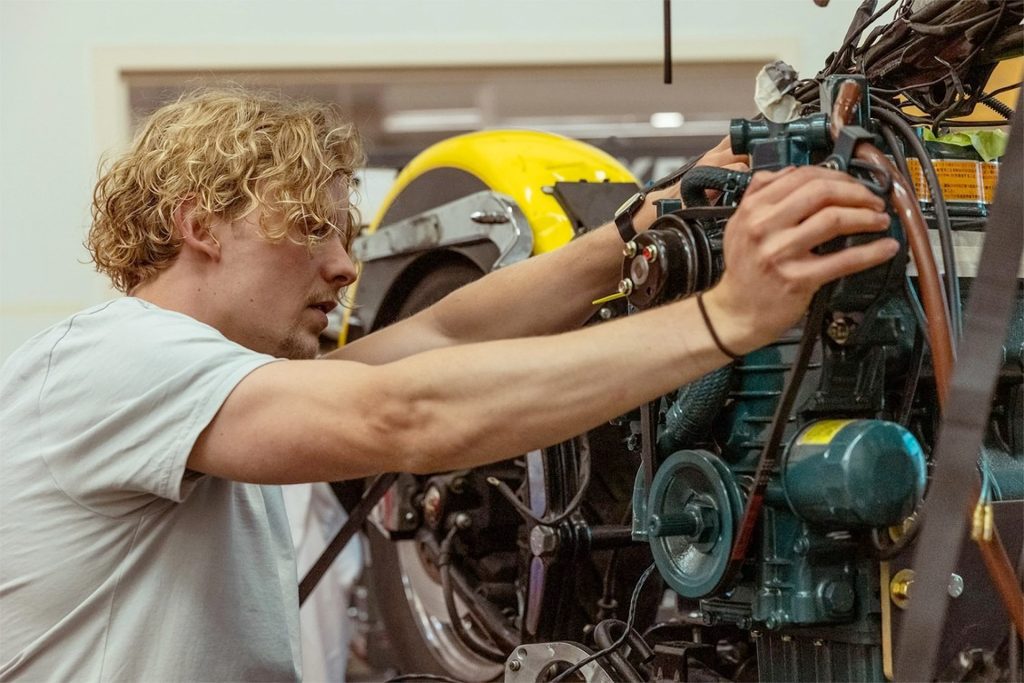 Instead of the 1,450 cm3 Twin Cam 88, the team chose to fit a water-cooled, three-cylinder vertical Kubota D902-T.