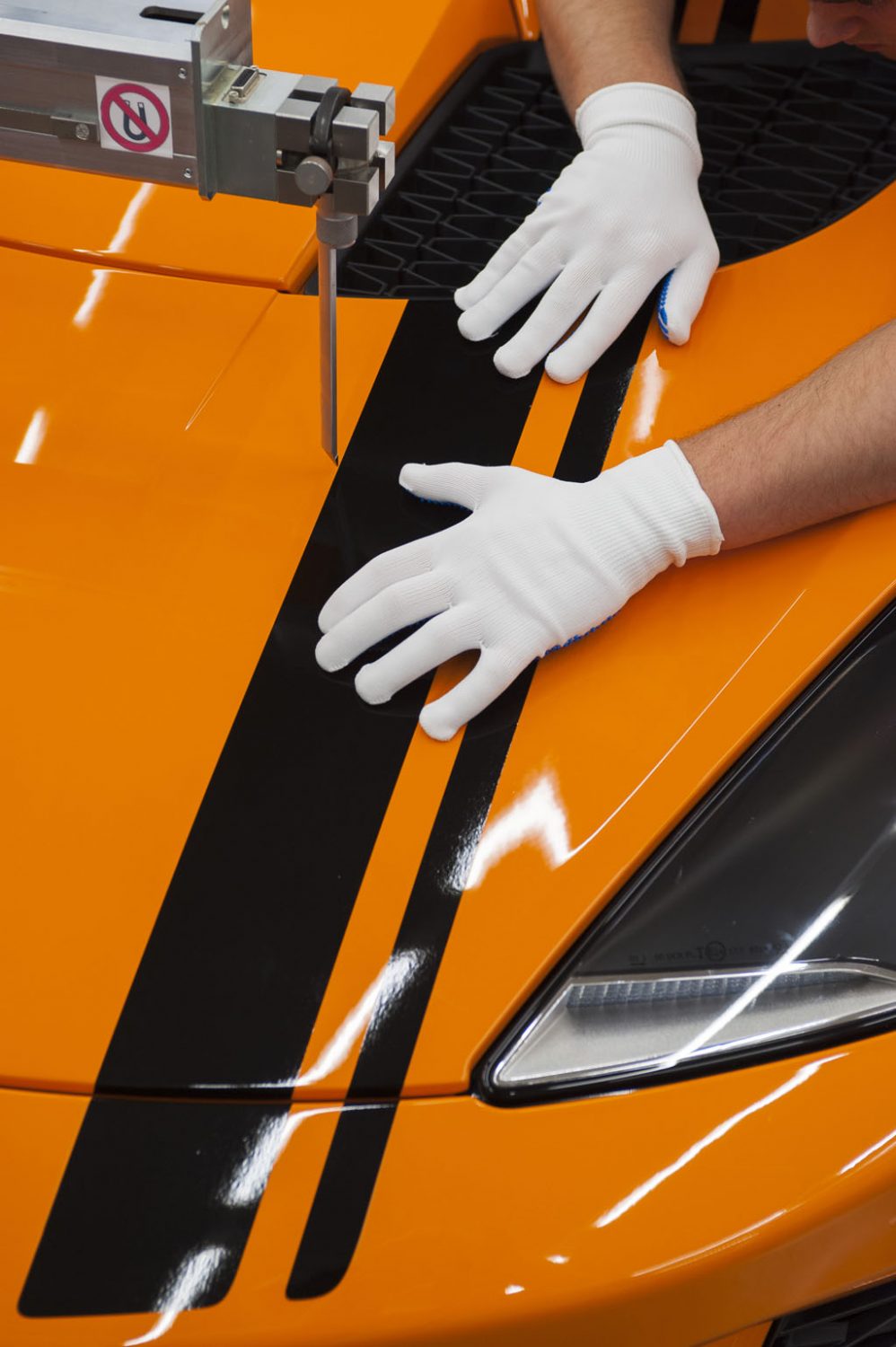 Pellicole adesive per la carrozzeria, disponibili in colore bianco, giallo, rosso e nero, vengono proposte per far risaltare alcuni importanti componenti del design esterno delle vetture: specchi retrovisori, pannelli esterni dei brancardi, spoiler o ala posteriore, splitter frontale. Per sottolineare l’anima ‘racing’ di ogni auto sportiva Lotus, sono disponibili tre varianti di Race Stripes longitudinali (singola, doppia, doppia asimmetrica) nei quattro colori bianco, giallo, rosso, nero, tutti con finitura lucida. Vengono inoltre proposte ulteriori grafiche personalizzate per il pannello del tetto e gli specchietti retrovisori; le grafiche a tema “national flags” includono la famosa Union Jack che conferisce alla vettura un aspetto ancor più emblematico.