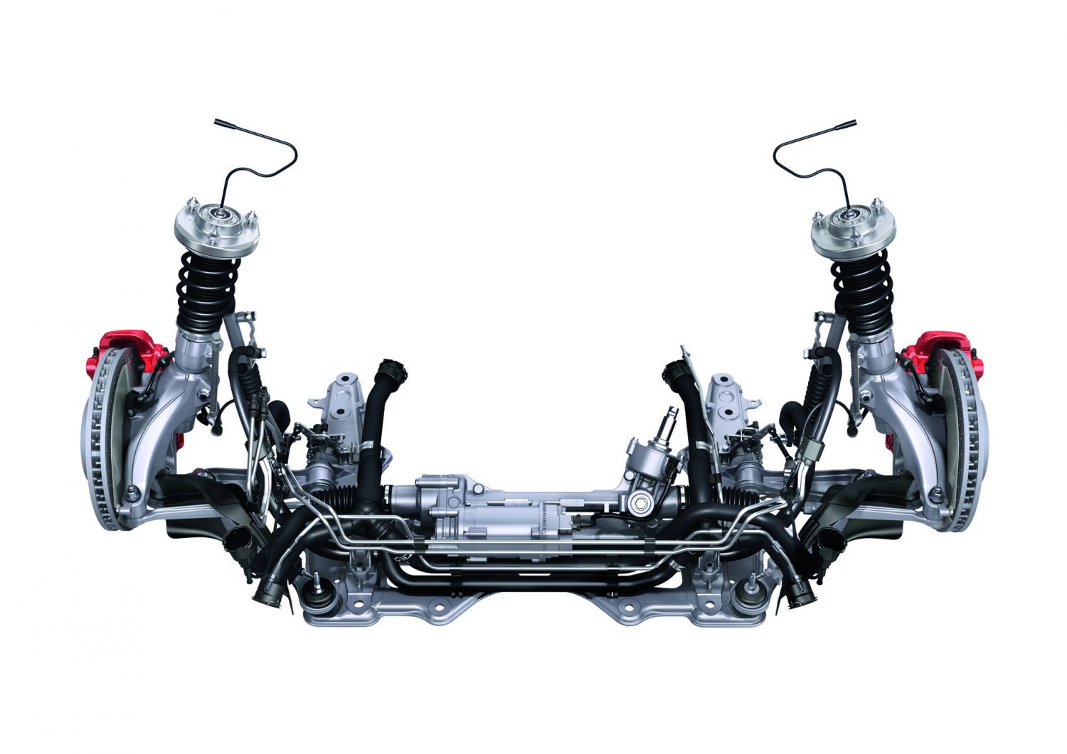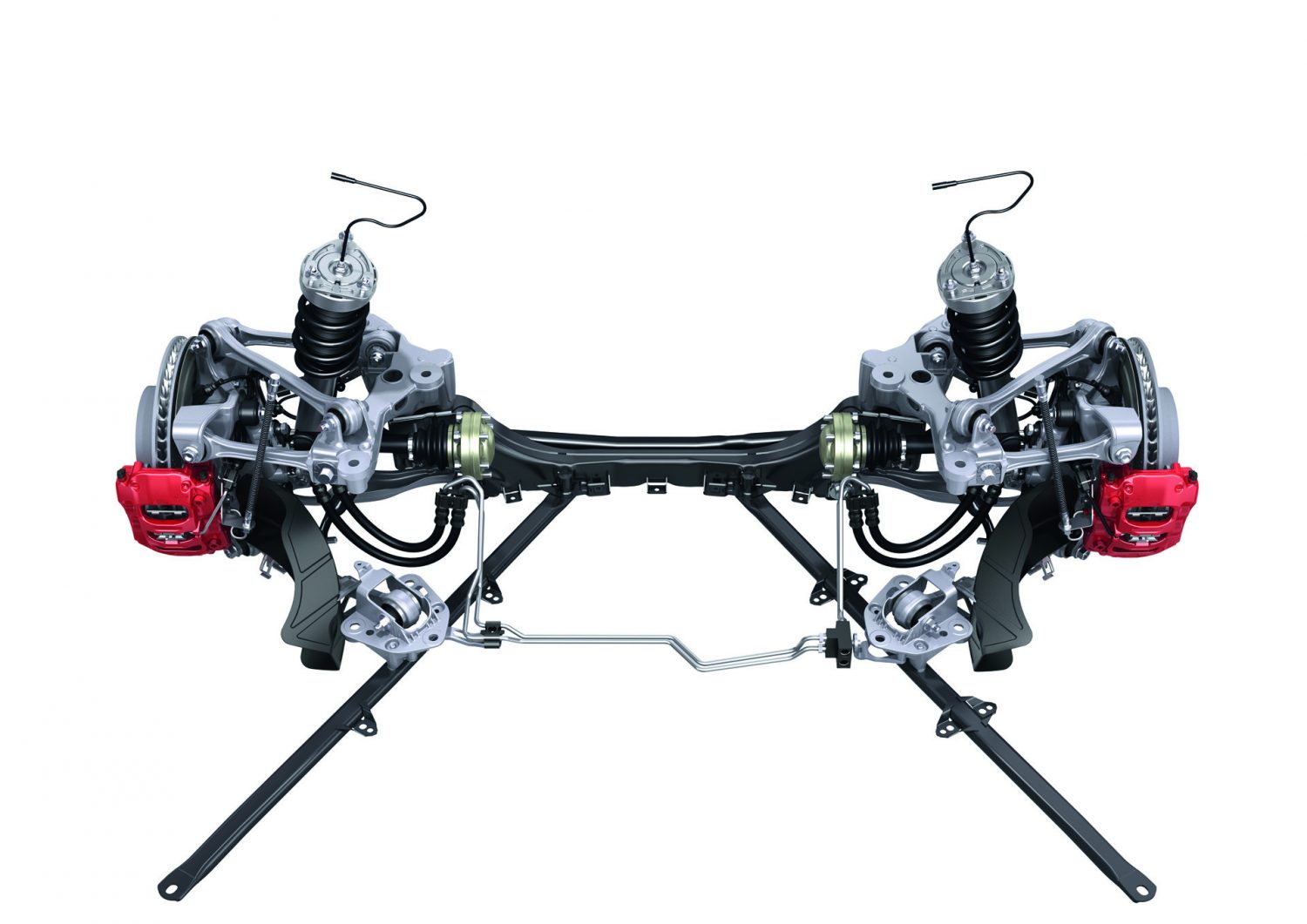 SOSPENSIONI: Un discorso analogo lo possiamo del resto fare anche per il comparto sospensivo, solo a prima vista simile al precedente. Gli schemi, certo, sono quelli che hanno fatto da ormai più di vent’anni la fortuna del modello, ovvero avantreno MacPherson e retrotreno a bracci multipli, ma anche qui non è mancata una certosina opera di aggiornamento: i montanti anteriori, ad esempio, sono stati irrigiditi in modo da migliorare il mantenimento degli angoli caratteristici sotto carico, ed è stato ridotto l’effetto di “dive” del muso in frenata. Per quanto riguarda il retrotreno, è stato pressoché interamente ridisegnato ed è ora in grado di offrire, tra le altre cose, maggior comfort grazie ad un maggior effetto di filtraggio longitudinale ed all’adozione di silentblocks completamente rivisti.