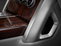La maggior parte della pulsanteria, inclusi la cornice dello start/stop ed i comandi rotativi, come anche la pedaliera, sono in alluminio ricavati dal pieno, con bei dettagli godronati. Questa cura del dettaglio si estende ad entrambe le consolle centrali, anteriore e posteriore, con materiali speciali per i porta lattine e i coperchi delle prese. I nuovi regolatori dei poggia braccia non solo presentano lo stesso dettaglio di lavorazione, ma ne semplificano l’uso. I passeggeri della seconda fila possono rilassarsi in lussuosi sedili corredati di compartimento refrigerato e tavolini dispiegabili elettricamente. I montanti posteriori incorporano ganci appendiabiti in alluminio pieno mentre, sul pavimento, la finitura in alluminio delle guide dei sedili e gli spessi tappetini di pile di mohair ritorto, completano la sensazione di un lusso sontuoso. Il tocco finale all’ambiente è dato dal manuale utente ricoperto in pelle e dal telecomando lucido Autobiography con finitura godronata. La SVAutobiography offre l’opzione di un pianale del vano bagagli scorrevole, una novità Range Rover 2016. Il pianale di alluminio, splendidamente realizzato e con finitura in legno a scelta, scorre all’indietro per la massima praticità, facilitando le operazioni di carico e scarico. Per chi ama la versatilità del portellone suddiviso della Range Rover, il reparto Special Vehicle Operations ha sviluppato l’‘Event Seating.’ Riposto del vano bagagli, l’Event Seating può essere aperto rapidamente e facilmente, consentendo a due adulti di sedere comodamente sulla sezione inferiore del portellone. Questa opzione, realizzata in pelle Windsor su una struttura in resistente alluminio, piacerà particolarmente a chi già apprezza le caratteristiche di versatilità, “lavoro e diporto”, della Range Rover.