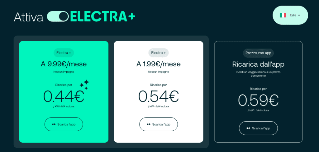 Considerando un tragitto tipico Milano–Roma di circa 580 km, il costo stimato della ricarica con Electra+ si aggira intorno a 50,11 euro o 40,83 euro, a seconda del piano scelto, contro una media attuale di 60,32 euro.