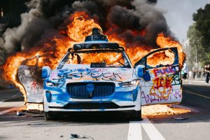 C’è poi un altro punto, decisamente controverso: i veicoli autonomi imbrattati, vandalizzati e dati alle fiamme da quelle non si contano neanche più, perché spesso accusati di complicare ulteriormente un traffico che di per sé è già abbastanza caotico.