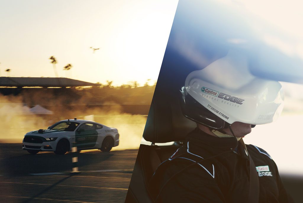 Sfida all’ultimo ostacolo. In una sfida inedita dove si fondono tecnologia dei videogame e abilità di guida sportiva nel mondo reale, Castrol EDGE ha presentato oggi la sua ultima sfida Titanium Trial, un testa a testa tra due star internazionali della guida amanti dell’adrenalina: il professionista del Formula Drift Matt Powers e lo stunt driver Ben Collins (già noto come “The Stig”). L’emozionante competizione ha visto il giovane esordiente Matt Powers sfidare il più esperto Ben Collins su un circuito mai visto prima, dove entrambi si sono spinti al di là dei limiti del proprio talento. I due hanno gareggiato per conquistare la vittoria sull’asfalto assolato di Los Angeles, a bordo di una vera Ford Mustang V8 del 2015 con motore lubrificato da Castrol EDGE, mentre dai caschi Oculus Rift Kit di ultima generazione i piloti vedevano scorrere davanti a sé un pericoloso circuito virtuale in continua evoluzione, con pareti a strapiombo e curve mortali. Grazie alla fusione tra tecnologia dei videogiochi e abilità di guida professionali, le vetture hanno potuto reagire nel circuito del mondo reale. Per Matt è stata un’esperienza simile alla prova #VirtualDrift che ha affrontato a maggio 2015, anche se questa volta ha dovuto scontrarsi con un temibile avversario, oltre che con gli ostacoli disseminati in questo percorso futuristico.