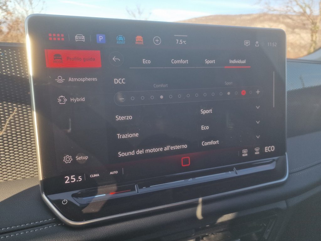 Il comportamento è però molto influenzato dal programma di guida selezionato tramite la schermata del Drive Mode, a cui si accede premendo tramite la rotella sul tunnel che normalmente fa da regolatore del volume.