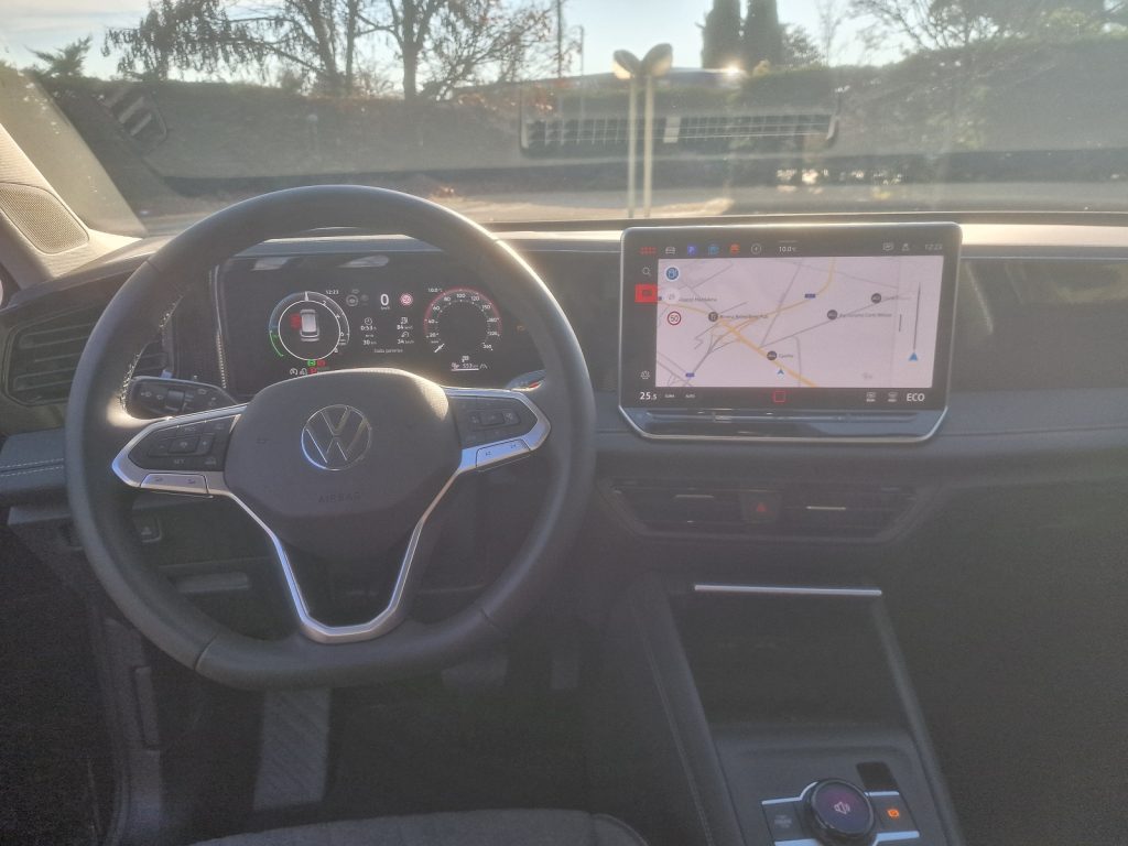 L’abitacolo ha una strumentazione standard con Digital Cockpit da 12,9″ e display centrale da 10,25″ accompagnato da una grafica che propone una barra superiore con icone fisse personalizzabili. In più, con questa generazione Volkswagen ha provvisto il volante di comandi fisici e inserti retroilluminati. La dotazione specifica dei modelli ibridi include anche alcuni highlight tra cui il sistema di ammortizzatori a controllo elettronico DCC Pro.